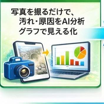 写真を撮ることで、きれい・汚い、汚れの原因をAIが分析し、グラフなどで見える化します。