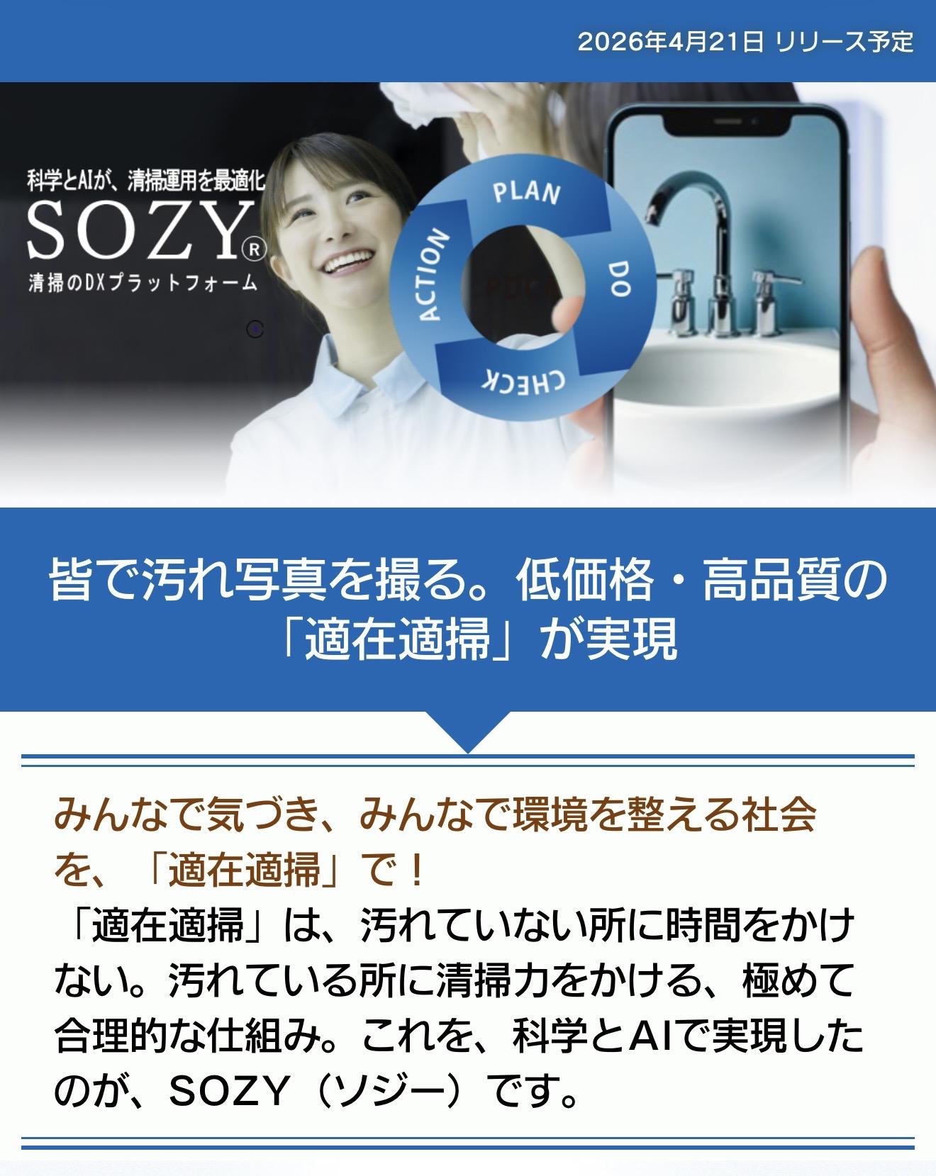 SOZYは、「適在適掃」で現場を整え、無理なく清潔を守るDXプラットフォームです。